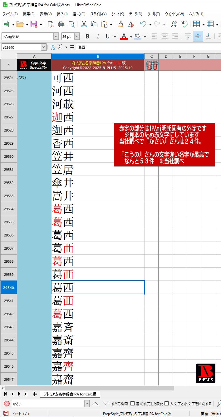 | プレミアム名字辞書PLUS-IPA for Excel-365/LibrerOffice) |