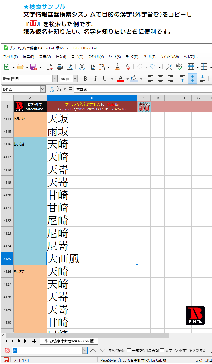| ① | プレミアム名字辞書PLUS-IPA for Calc版(Win & Mac) LibreOffice 7.0以降 |